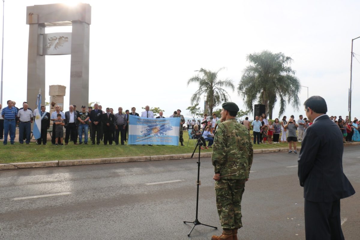 El intendente de Posadas, Joaquín Losada, encabezó este martes frente al monumento a los “Caídos en Malvinas”, en el cuarto tramo de la Costanera capitalina, el acto para honrar a los héroes que combatieron en el conflicto bélico del Atlántico Sur en 1982.