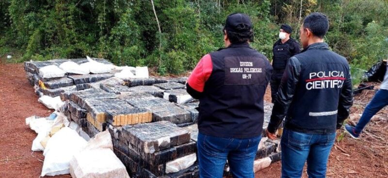 Este domingo, en el marco de los operativos preventivos en zonas rurales, conjuntamente la División de Drogas Peligrosas y la Comisaría jurisdiccional, recorrían las plantaciones de yerba y pinares de la localidad de Garuhapé-Mí, al ingresar por la Ruta El Porvenir hasta el Km 4, se adentraron a una zona de montes donde tras recorrer el lugar ubicaron 324 bultos acopiados entre las malezas, los cuales contenían una sustancia amarronada prensada, que luego con las pruebas de narcotest se estableció que se trataba cannabis sativa.