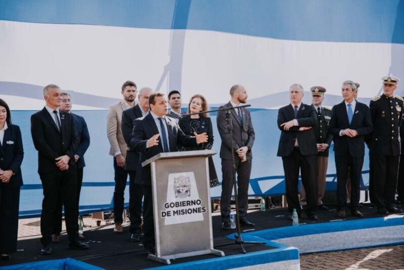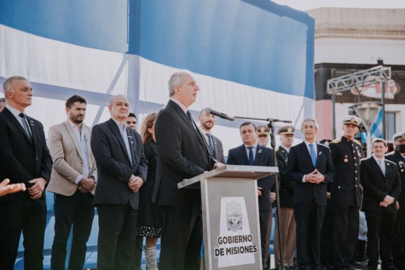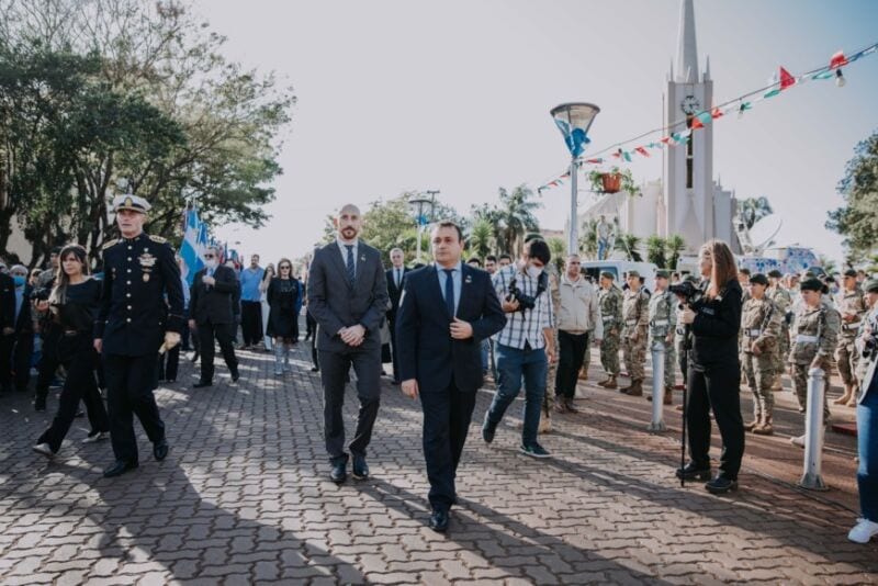 El mandatario provincial encabezó la ceremonia central, junto al vicegobernador, Carlos Arce y varios ministros del Ejecutivo provincial, además del intendente de Oberá, Pablo Hassan; la presidenta del Superior Tribunal de Justicia, Rosanna Pía Venchiarutti Sartori; al vicepresidente primero de la Cámara de Diputados Provincial, Hugo Passalacqua, y demás funcionarios de los tres poderes; intendentes de localidades vecinas; alumnos, docentes, autoridades militares y una multitud de vecinos que acompañó el homenaje.