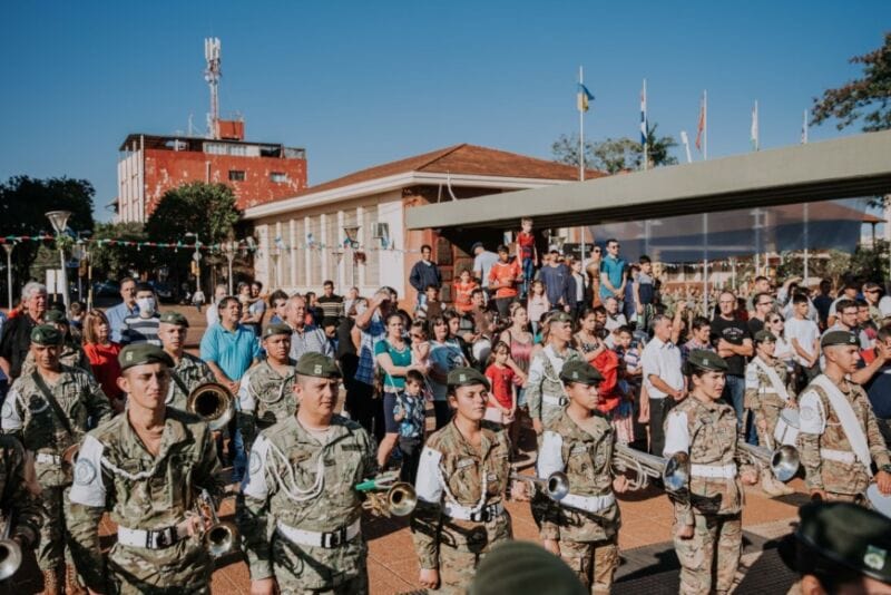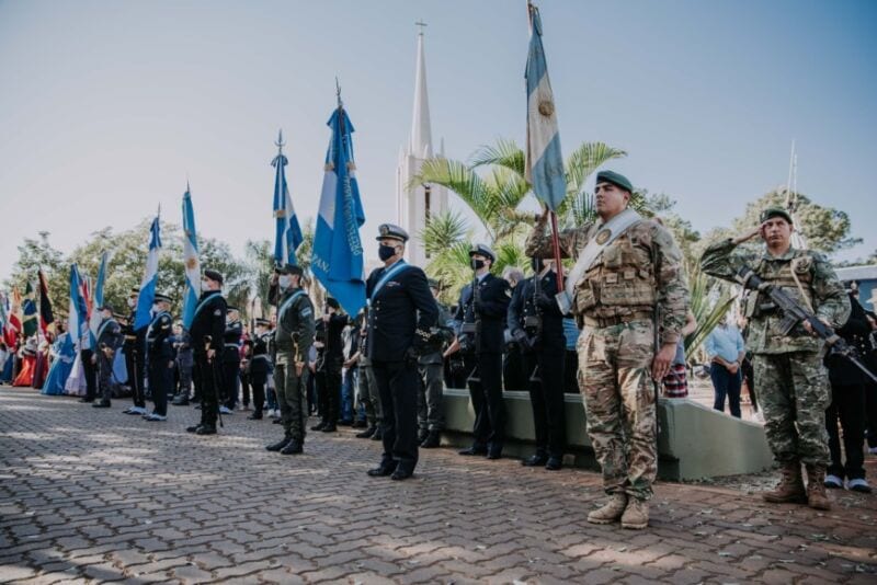 Durante el acto, el gobernador saludó a la Milicia Patriótica y se rindió honor a la bandera de guerra. Seguidamente, se realizó el saludo a la Agrupación 9 de Julio. En primer lugar, lo hizo el gobernador, luego el comandante de la Brigada de Monte XII coronel Sergio Jurczyszyn y por último el Intendente de Oberá, Pablo Hassan. Posteriormente se presentó la ofrenda floral en honor a los héroes de esta gesta histórica, seguido del tradicional minuto de silencio con el acompañamiento de la Banda de música de la Policía de la Provincia y la Banda del Ejército, seguidamente se interpretó el Himno Nacional Argentino y la canción oficial Misionerita. También se destacó la intervención artística del grupo de Danzas folclóricas “Costumbres Argentinas”, de AJUPAPROM, que bailó el pericón nacional, antes de finalizar el acto con el desfile cívico-militar.