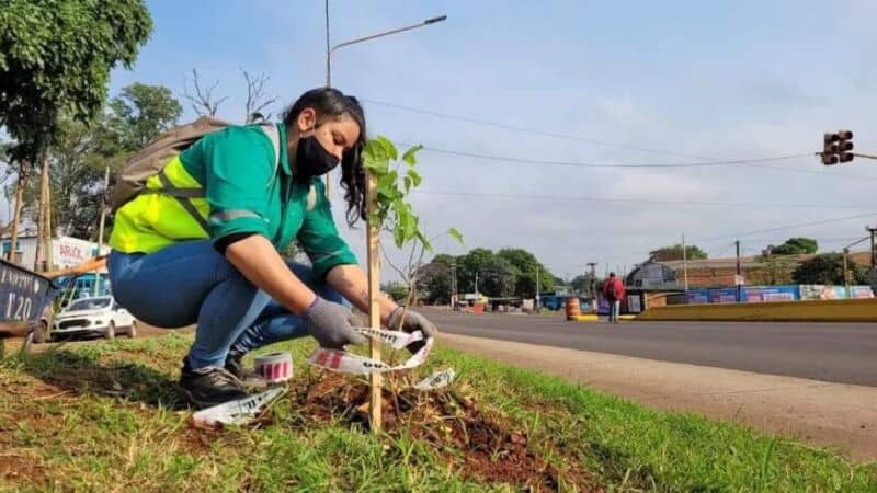 Sobre la avenida Tulo Llamosas, entre las avenidas Las Palmeras hasta Puerto Argentino, se viene desarrollando un operativo de arborización en la zona donde se habilitó la Travesía Urbana.