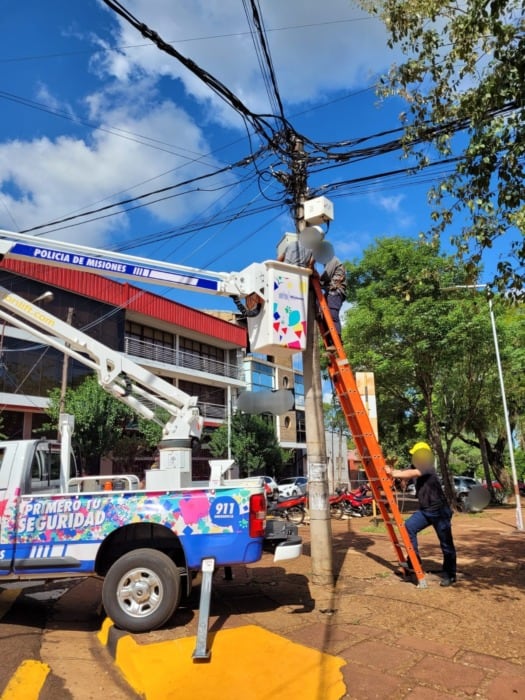 Está prevista la instalación de un tótem (con doble cámara frontal y superior respectivamente) con botón antipánico y más cámaras de seguridad del sistema domo (360º) que reforzarán el sistema de monitoreo, en puntos estratégicos de Oberá, desde la división Videovigilancia de la Unidad Regional II.