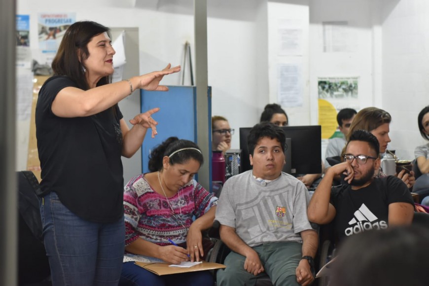 El taller se lleva adelante con la participación de una intérprete de lenguas de seña en el marco de un trabajo en conjunto con la Dirección de Discapacidad de la Municipalidad, con el objetivo de brindar una mejor experiencia e inclusión a los participantes del Programa Promover Igualdad de Oportunidades.
