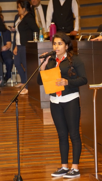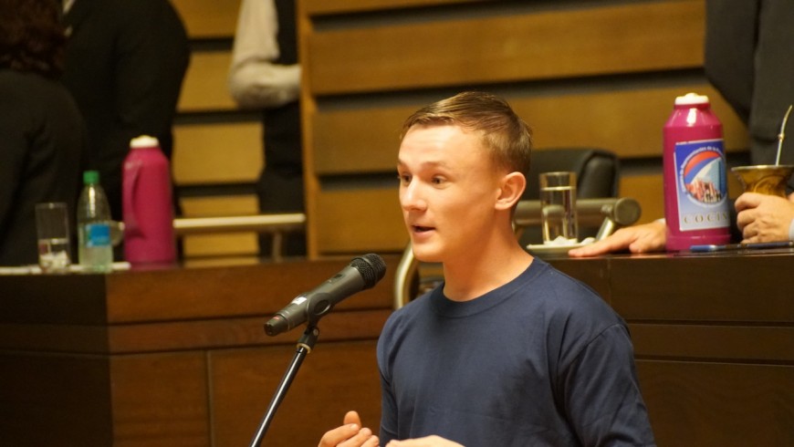 Comenzó la presentación la vicepresidente de la edición anterior, Juana Lima, de la Comercio 14 de Apóstoles, quien resaltó la posibilidad que tienen los jóvenes de ser representantes en el “Templo de la Democracia”, aludiendo al Poder Legislativo, y resaltó la importancia de participar haciendo oír los reclamos y proyectos. La joven animó a sus pares a que “aprovechen al máximo la experiencia”.