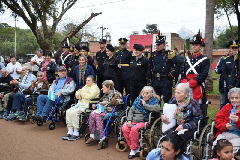 Como cada año, el personal policial en formación acompañó nuevamente en su celebración por el Día de la Independencia, a personas de la tercera edad e incluso con niños que también formaron parte del acto.