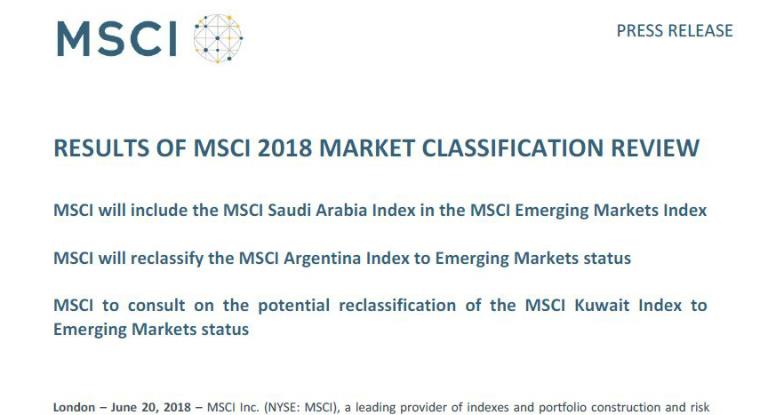 "En particular, los inversores institucionales internacionales expresaron su confianza en la capacidad del país para mantener las condiciones actuales de acceso al mercado de acciones, que es un factor clave en la clasificación de MSCI marco de referencia", señala oficialmente el comunicado del MSCI.