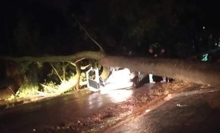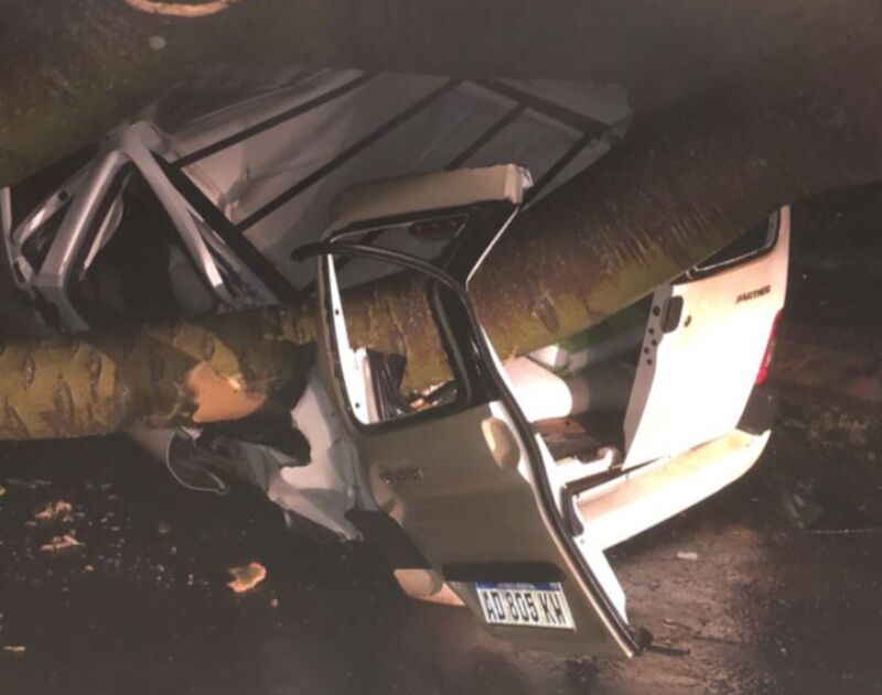 Sobre la calle México, entre Maipú e Italia cayó un árbol de grandes dimensiones arriba de un utilitario que circulaba por la zona y, pese a lo ocurrido, el conductor salió por sus propios medios.