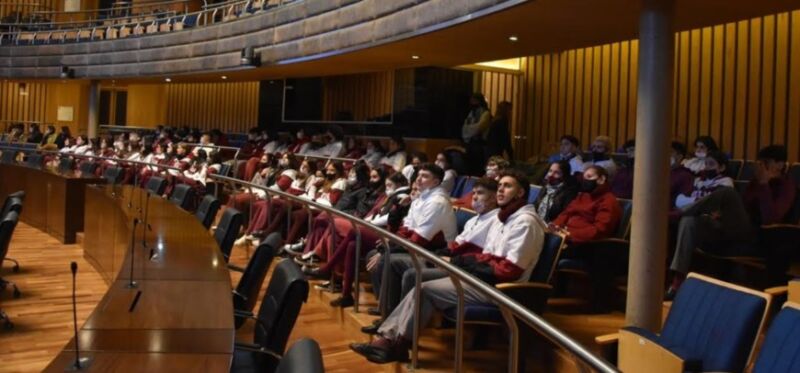 En total 55 jóvenes acompañados por un equipo docente participaron de las actividades previstas por el Parlamento Misionero. Asistieron, en el recinto de sesiones, a charlas brindadas por empleados legislativos, interactuaron con el entorno a partir de tecnologías y comprobaron conocimientos compitiendo por equipos en un juego interactivo.