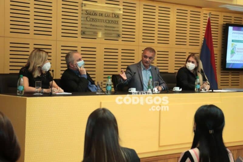 Encabezaron la presentación el vicepresidente primero de la Legislatura provincial, Hugo Passalacqua; el vicegobernador de la provincia, Carlos Arce; la presidente de la comisión de Niñez, Género, Familia y Juventud, Silvia Rojas; y la presidente de la edición 2021 del Parlamento, Natalia Pino Roldan.