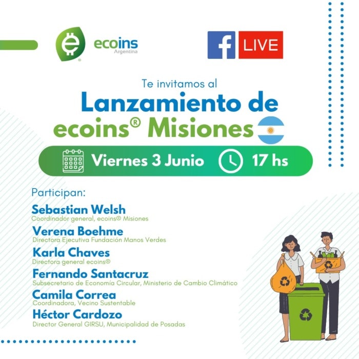 Ecoins®, el programa de lealtad regional que promueve el reciclaje y la transformación hacia una economía circular, anunció su llegada a la Argentina, desde la ciudad de Posadas. A partir del domingo 5 de junio los vecinos de la ciudad pueden sumarse para ser premiados por la separación de los residuos reciclables en sus hogares.