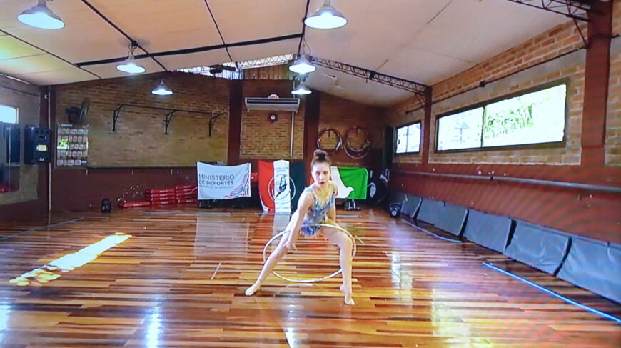 La exhibición, que tuvo una duración de cuatro horas, fue llevada adelante desde Oberá por la profesora Natalia Ottaviano, secretaria técnica la Federación Misionera de Gimnasia, en la rama rítmica. De manera paralela, desde sus casas, las juezas nacionales Marcela Arman (Balcarce, Buenos Aires) y Marta Bogado (Rosario, Santa Fe) realizaron las devoluciones técnicas de las coreografías, como una manera de estar cerca de las gimnastas para ayudarlas a seguir creciendo en la disciplina y generar motivación.