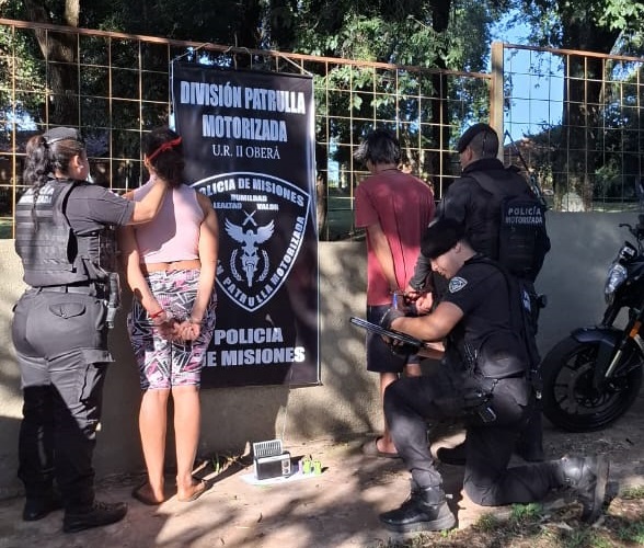Efectivos de la División Patrulla Motorizada de la UR-II Oberá intervinieron en dos hechos de robo ocurridos en distintos puntos de la ciudad, en los que una pareja actuaba junto a su hijo menor de edad. Como resultado del procedimiento, los dos adultos quedaron demorados junto al adolescente y se secuestraron los elementos denunciados.