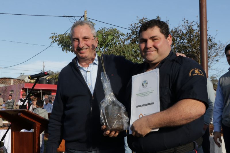 En Paraje Terciado Paraíso el gobernador Hugo Passalacqua dejó inaugurado en la tarde de este jueves la delegación municipal dependiente de la Municipalidad de San Pedro y entregó 140 títulos de propiedad y 50 permisos de ocupación, a los dueños de parcelas de tierra que esperaban desde hacía muchos años en las localidades de San Vicente, Comandante Andresito, El Soberbio y en el municipio anfitrión.