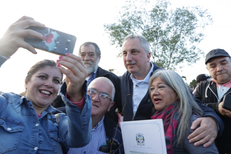 Junto al mandatario provincial estuvieron el ministro de Ecología Juan Manuel Díaz, la subsecretaria de Tierras, Sonia Melo; el intendente local, Miguel Dos Santos y numeroso público entre beneficiarios, amigos, parientes y vecinos del pujante paraje que se desarrolla a ritmo acelerado a pocos kilómetros de la Capital de la Araucaria.