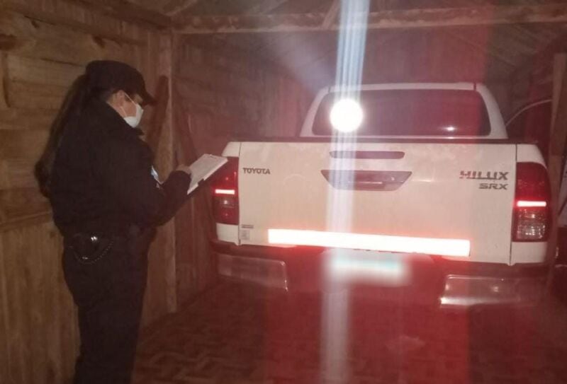 Todo ocurrió tras un allanamiento llevado a cabo en un domicilio deshabitado del ex kilómetro 3 de la ruta provincial nro. 13. Allí secuestraron un Toyota Hilux sustraída en horas de la madrugada de este sábado.