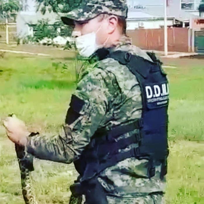 Este lunes, los efectivos de la Dirección Defensa del Medio Ambiente resguardaron a una serpiente Yarará, que fue encontrada en un espacio verde del barrio Itaembé Guazú de esta localidad.