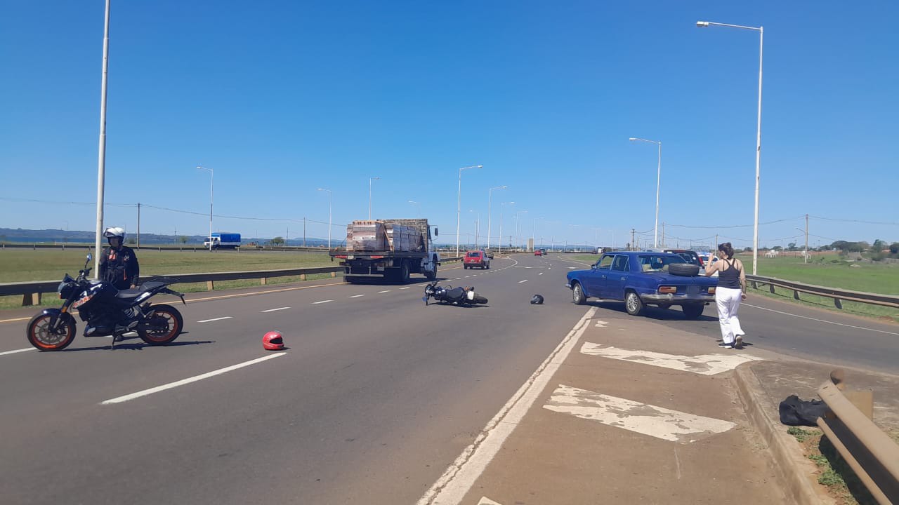 Este martes a las 13:40 horas, se produjo un siniestro vial en la intersección del Acceso Sur y la rotonda de retorno al barrio A 3-2.