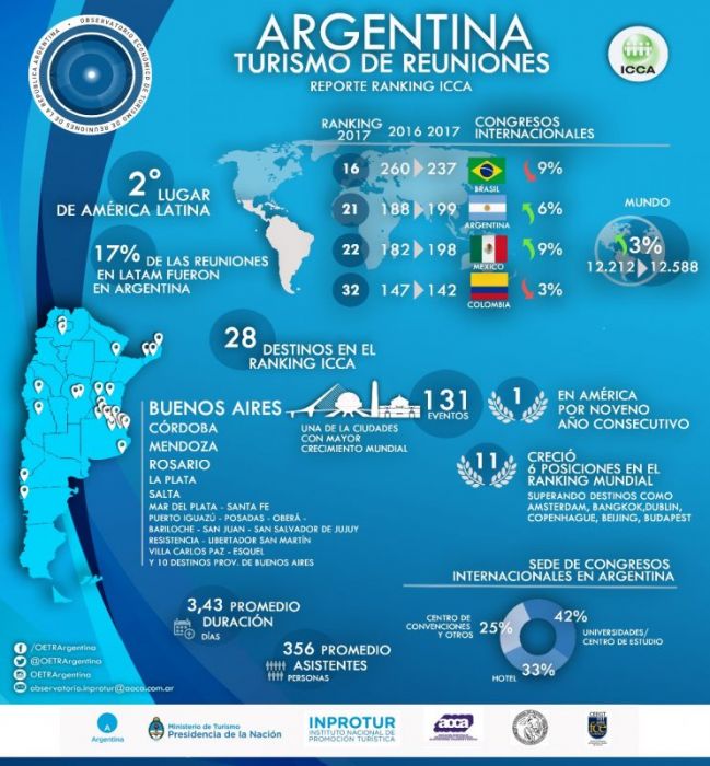 El titular de la Agencia Posadas Turismo, Ariel Kremar, explicó que “este ranking posiciona a la capital provincial como un destino que cuenta con las instalaciones y las plazas necesarias para recibir a profesionales de distintas temáticas”.A diferencia del convencional, el turismo de reuniones busca mantener un cronograma de actividades distintiva, que se basa en la realización de congresos, encuentros, conferencias y workshops de nivel internacional en cualquier época del año, no sólo en temporadas altas.