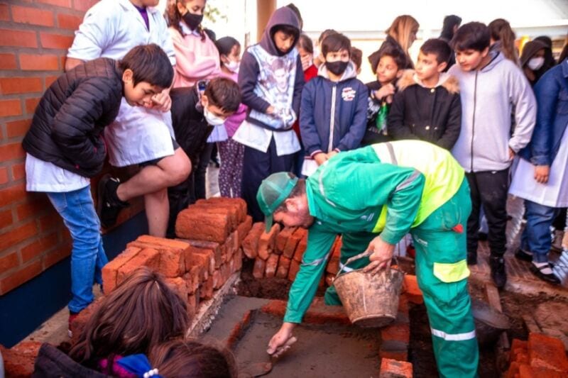 En el marco del plan de contención social que lleva adelante la Municipalidad de Posadas, el intendente Leonardo Stelatto participó de la construcción de un horno ecológico en la Escuela N°960, ubicada en Itaembé Guazú.