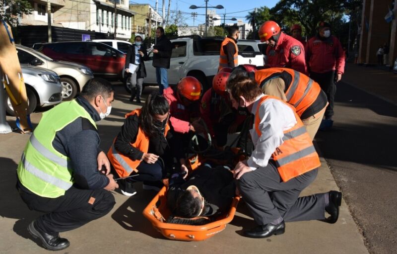 En tanto, el director de Bomberos de la Policía de Misiones, comisario general Elías Chagas, indicó que “se hizo un simulacro para establecer el tiempo de respuesta de las seguridades de emergencia, así como también el tiempo de evacuación del edificio”.