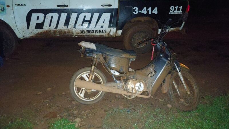 La intervención se concretó cuando los policías recorrían preventivamente el citado barrio, entre las calles Rivadavia y Maipú, cuando observaron a dos jovencitos de 15 y 16 años en el motovehículo, sin dominio colocado y cachas traseras.