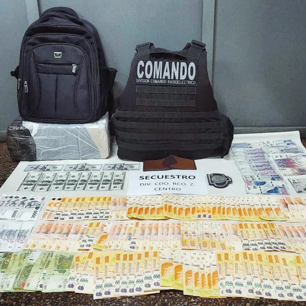 Rápidamente, los agentes lo interceptaron, lo detuvieron y recuperaron la mochila que contenía 1200 dólares y 181 mil pesos.