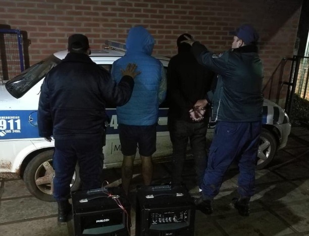 Ya en horas de la tarde, los efectivos de la Comisaría local en conjunto con los de Mártires, dieron cumplimiento a una órden de allanamiento librada por el Juzgado de Instrucción Uno de Oberá, en en el Lote 139, donde se procedió al secuestro de los dos parlantes, a la detención de Adrian P. de 35 años y Leonel B. de 22; quiénes previo examen médico, fueron alojados en sede policial a disposición del Juzgado de Instrucción interviniente.