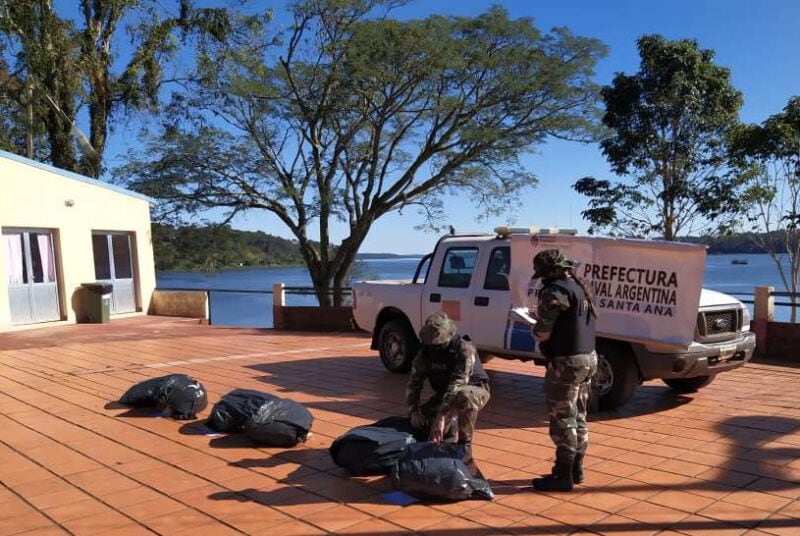 En Santa Ana, como resultado de tareas de investigación, efectivos de la Prefectura Naval Argentina detectaron un grupo de personas que trasladaban estupefacientes a la altura del kilómetro 1612 del río Paraná, a unos 1000 metros de la costa.