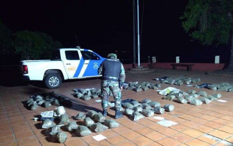 El hecho ocurrió cuando el personal de la Fuerza realizaba un patrullaje por la zona costera a la altura del kilómetro 1613 del río Paraná y observó varios bultos abandonados en la orilla.