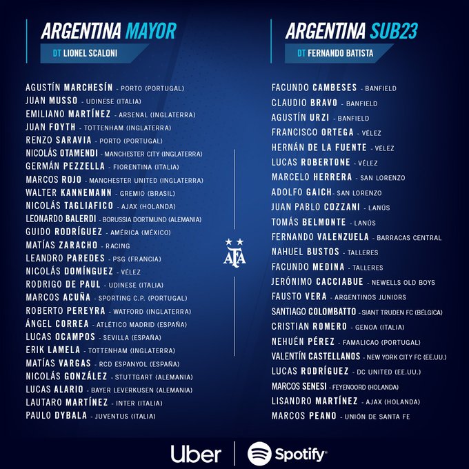 Agustín Marchesín (Porto), Juan Musso (Udinese) y Emiliano Martínez (Arsenal) serán los tres arqueros ante la decisión de no convocar futbolistas de Boca y River por quedar en medio de la semifinal de la Copa Libertadores, lo que dejó al margen a Esteban Andrada y Franco Armani.