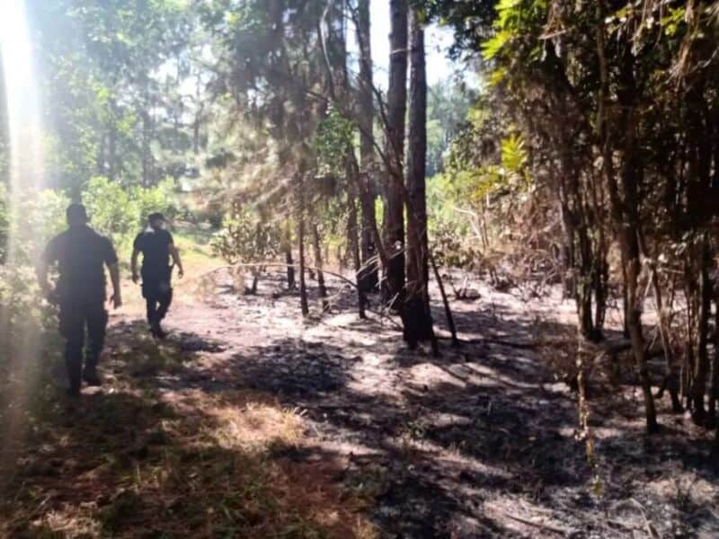 Minutos después de las 9 horas de este lunes, los efectivos de la comisaría de Los Helechos en conjunto con los bomberos voluntarios de Oberá y colonos de la zona, apagaron un incendio en un pinar de un lote privado ubicado en el paraje mencionado.