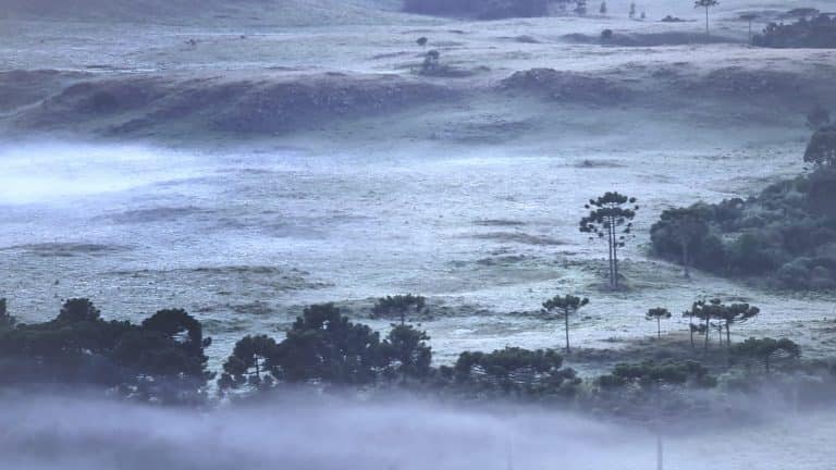 En el estado brasileño de Santa Catarina hubo registro de formación de heladas en los tramos de mayor altitud de la Serra. Según datos de Pronóstico Misiones, la temperatura alcanzó los 3,2°C en Urupema.