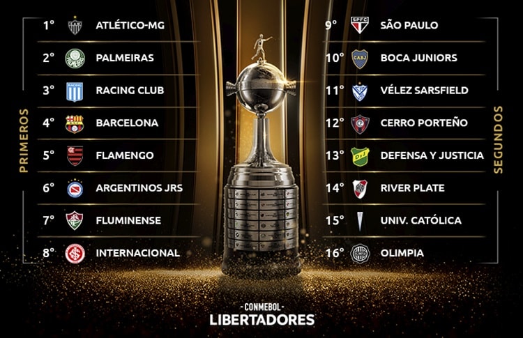 Por su parte, los líderes en la etapa inicial de la competencia se jugarán frente a los conjuntos que integrarán el Bombo 2, donde estará Vélez, Talleres, Fortaleza, Athlético Paranaense y Corinthians de Brasil, Emelec de Ecuador y Cerro Porteño de Paraguay.