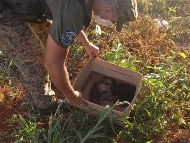 Este lunes, los efectivos de la División Defensa del Medio Ambiente de San Vicente resguardaron a tres perritos que estaban lesionados y abandonados en una caja de cartón.