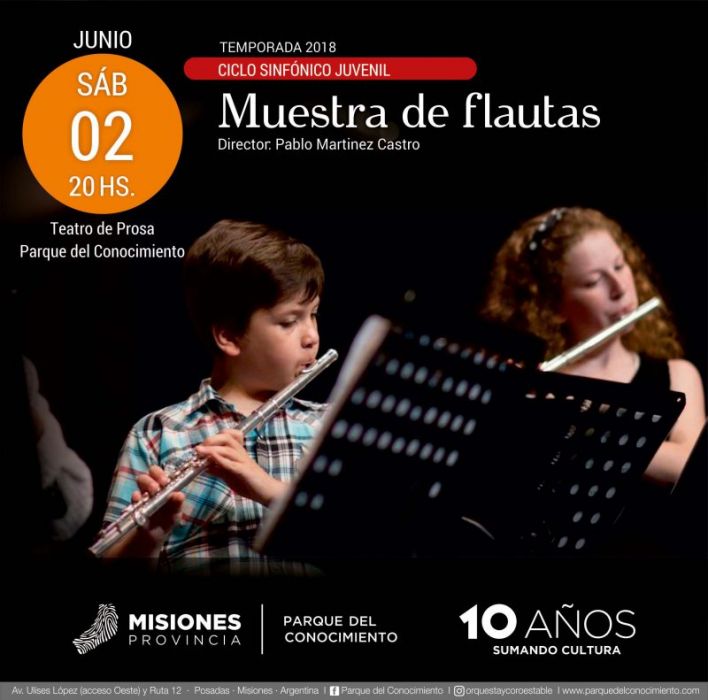 Perfilado como una de las grandes promesas en la formación de músicos en la Provincia, el Taller de Flauta Traversa del Parque del Conocimiento, acargo de su director Pablo Martínez Castro, ofrecerá un concierto para toda la familia interpretando obras solistas y de conjunto de compositores como Antonio Vivaldi, Georg Friedrich Händel, Judith Akoshky, Mario Videla, Michael Praetorius, Giuseppe Gariboldi, Gustav Mahler, Arcangelo Corelli, Jan Van der Roost, Florant Meline, Georg Philipp Telemann, Toussaint Bordet y Friedrich Kuhlau.