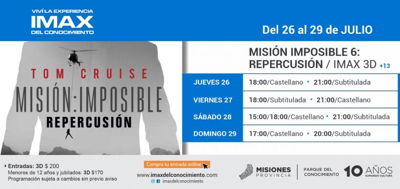 La exitosa saga del espía norteamericano Ethan Hunt (Tom Cruise) se estrena a partir de este jueves en el IMAX del Conocimiento, con toda la adrenalina a la que nos tiene acostumbrados.