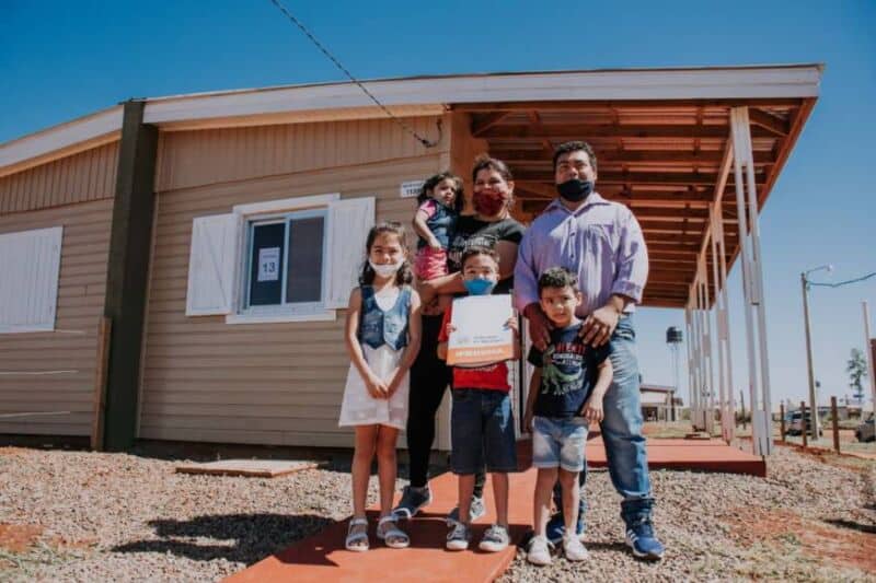 Hoy se entregaron 44 viviendas sustentables progresivas de madera con un prototipo de diseño abierto a futuras ampliaciones por parte de los adjudicatarios. Las mismas cuentan con cocinas y duchas eléctricas junto a los apliques de luz. Pertenecen al grupo de las 864 unidades habitacionales de esta tipología agrupadas en el Sector B-Remanente Sur del Complejo Itaembé Guazú, de las cuales -en el último semestre- ya se entregaron 309 casas