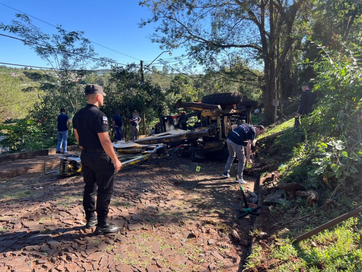 El incidente ocurrió este lunes a las 15 horas, sobre calle Gervasio Posadas, en el barrio Fátima. Según se estableció, el trabajador circulaba con la maquinaria cuando, al descender por una pendiente pronunciada, perdió el control.